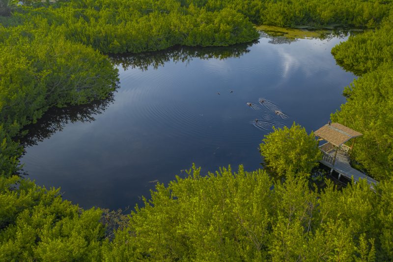 Whether you are a professional or amateur birder, this is a fantastic place for birdwatching —bring your camera to capture stunning wildlife in their natural habitat. Over 60 species – a quarter of all the bird species native to the Cayman Islands – have been observed here at one time or another. Some of the types of birds that can often be seen are moorhens, herons, egrets, grebes, ducks, rails, plovers, sandpipers, terns, pigeons, doves, kingfishers, woodpeckers, kingbirds, flycatchers, vireos, warblers and grassquits. It is also quite possible to see a few of the rarer species, like the diminutive Least Bittern, or the beautiful Purple Gallinule. But it is not just birds that abound; butterflies congregate in this area, and the native freshwater turtle, the Hickaee, has often been spotted among the reeds. The endemic freshwater fish, the Cayman mosquitofish (Gambusia xanthosoma), is also found beneath the pond’s surface. The pond is surrounded by mangroves and buttonwood, which tuck away this special place in nature from the bustle of traffic.