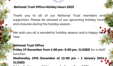 Thank you to all of our National Trust members and supporters. Please be advised of our upcoming holiday hours and…