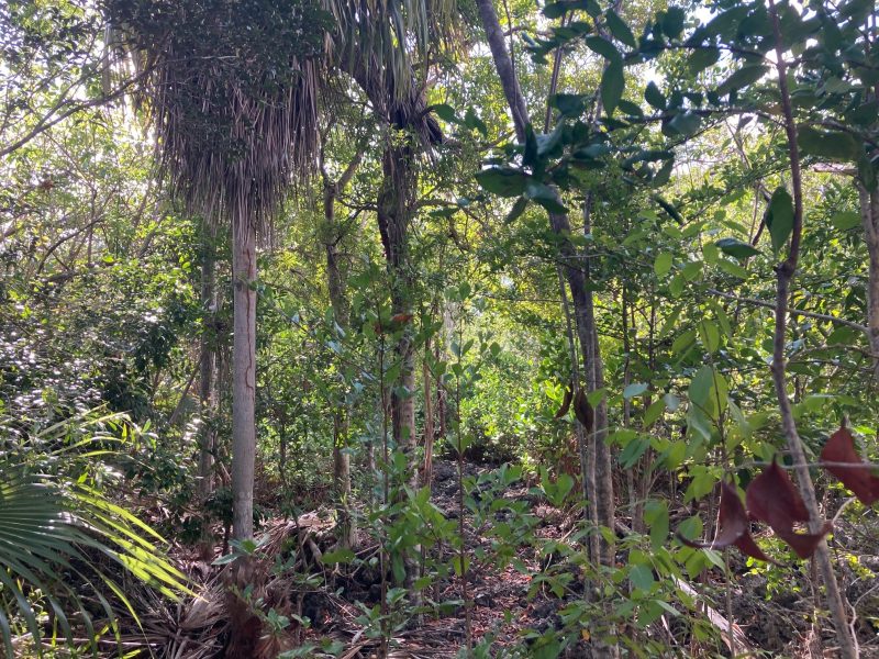It has also been discovered that at least three different types of bat roost in caves on a high forested ridge in the reserve: the Brazilian Free-tailed Bat (Tadarida brasiliensis); the Jamaican Fruit-eating Bat (Artibeus jamaicensis) and the Big-eared Bat (Macrotus waterhousii). Grand Cayman Parrots and White-crowned pigeons known as “Bald Pates” also nest in the old growth dry forest; many rare hardwood trees flourish there as well.