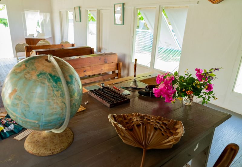 Local craftsmen rallied together under the direction of Head Carpenter Will Wallace Bodden to build the airy one-room schoolhouse. Ironwood posts were used to support the building, which is constructed with walls of cement poured between the posts.